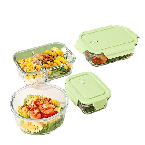 Cibo popolare scatola di stoccaggio professionale Set contenitore di cibo ermetico vetro soffio con coperchio a microonde contenitori di vetro